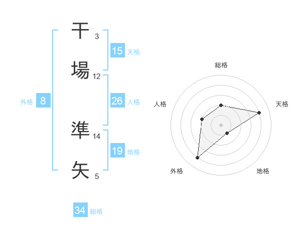 干場 準矢さんの総格は34画の2点!