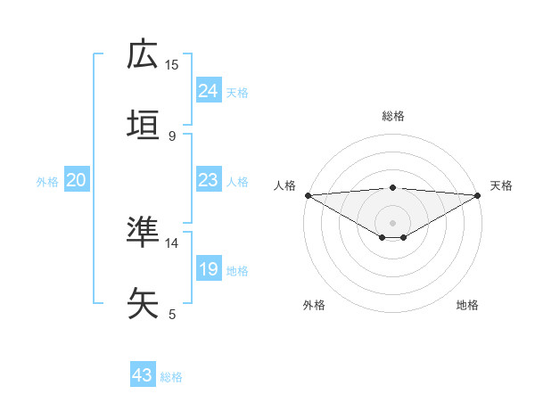 広垣 準矢さんを姓名の画数から五運を鑑定