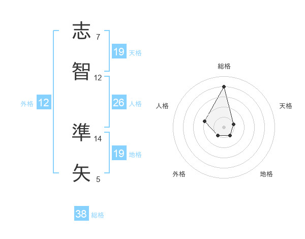 志智 準矢さんの総格は38画の4点!