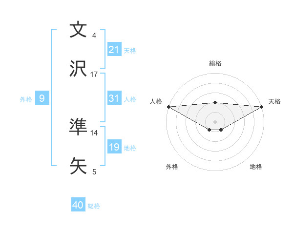 文沢 準矢さんの天格は21画の5点!