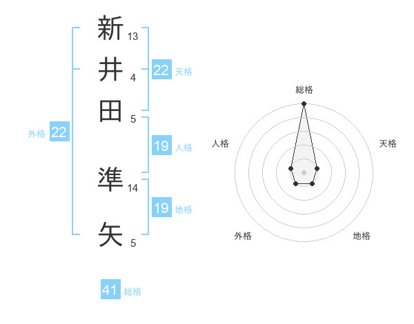 新井田 準矢さんを姓名の画数から五運を鑑定