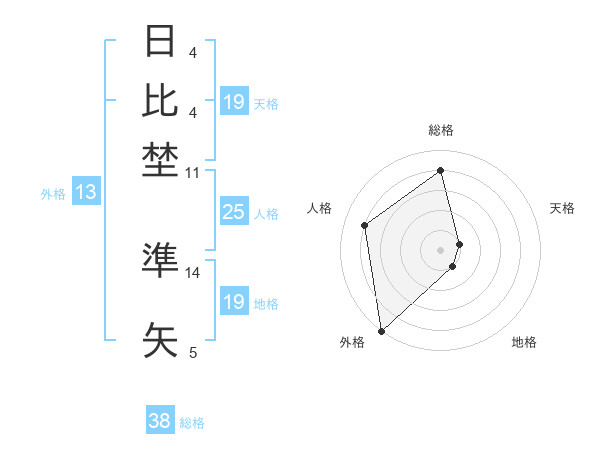 日比埜 準矢さんの総格は38画の4点!