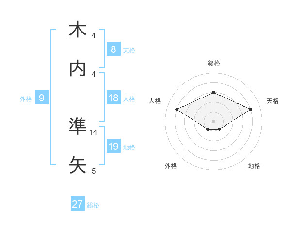 木内 準矢さんの総格は27画の3点!