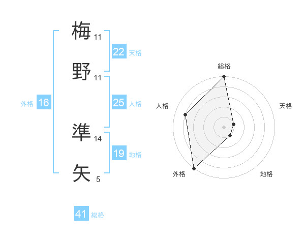 梅野 準矢さんを姓名の画数から五運を鑑定
