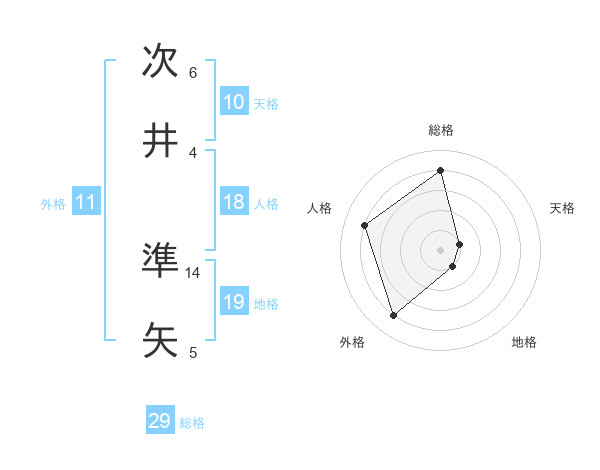 次井 準矢さんの総格は29画の4点!