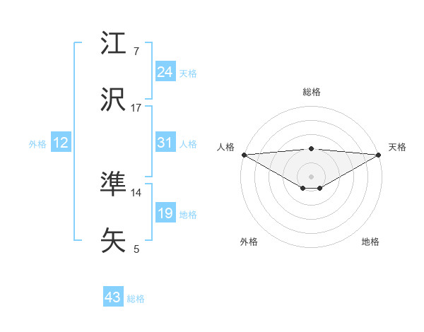 江沢 準矢さんを姓名の画数から五運を鑑定