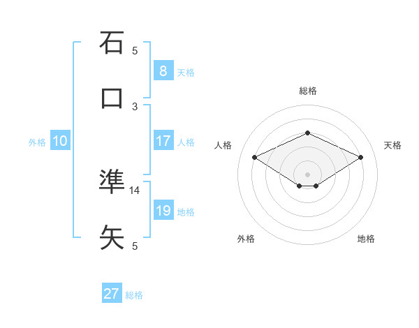 石口 準矢さんを姓名の画数から五運を鑑定