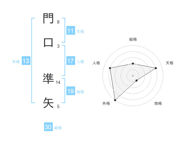 門口 準矢さんを姓名の画数から五運を鑑定