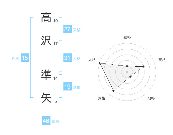 高沢 準矢さんを姓名の画数から五運を鑑定