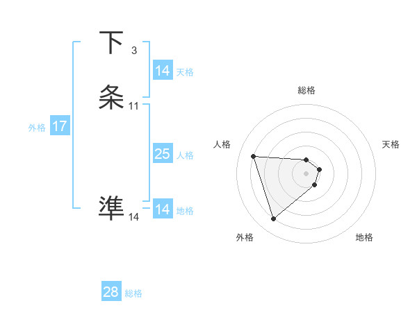 下条 準さんの天格は14画の1点!