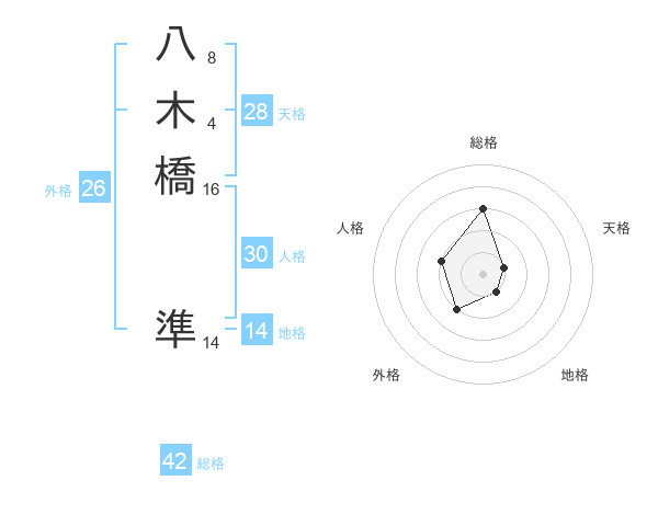 八木橋 準さんの総格は42画の3点!