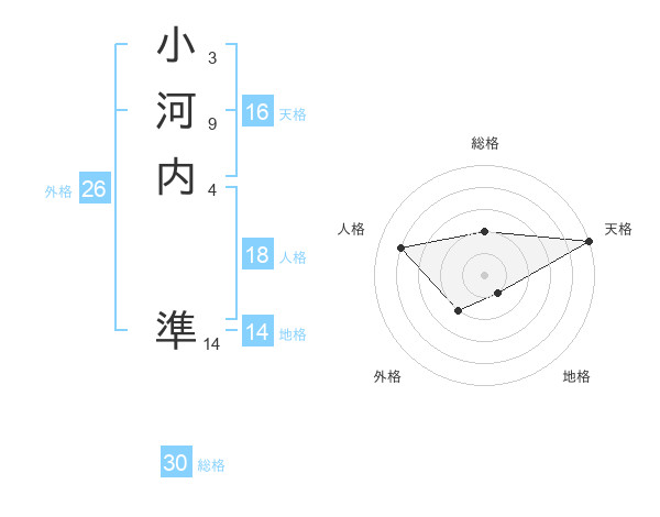 小河内 準さんの総格は30画の2点!