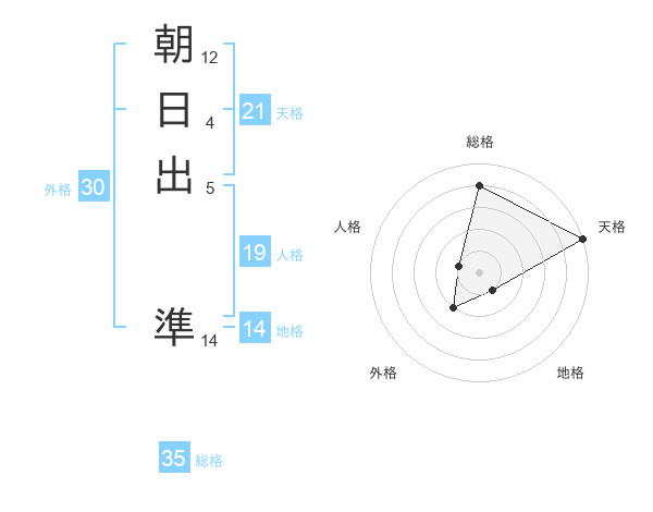 朝日出 準さんの総格は35画の4点!