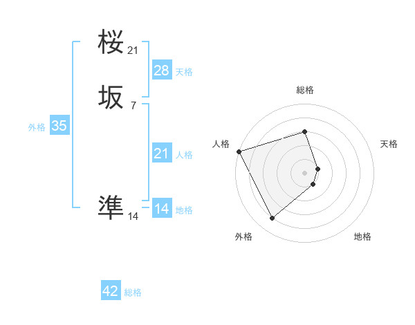 桜坂 準さんの人格は21画の5点!