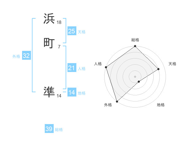 浜町 準さんの総格は39画の5点!