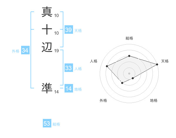 真十辺 準さんの天格は39画の5点!