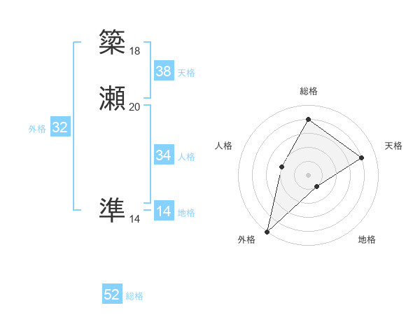 簗瀬 準さんの総格は52画の4点!
