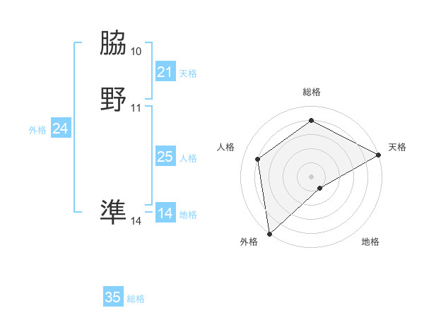 脇野 準さんの天格は21画の5点!