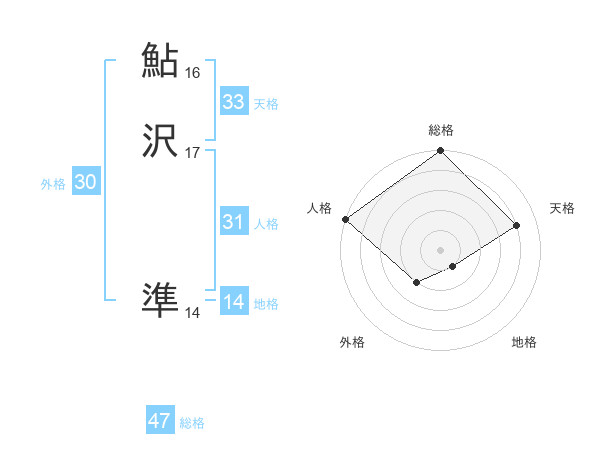 鮎沢 準さんの総格は47画の5点!