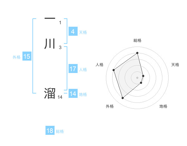 一川 溜さんの総格は18画の4点!