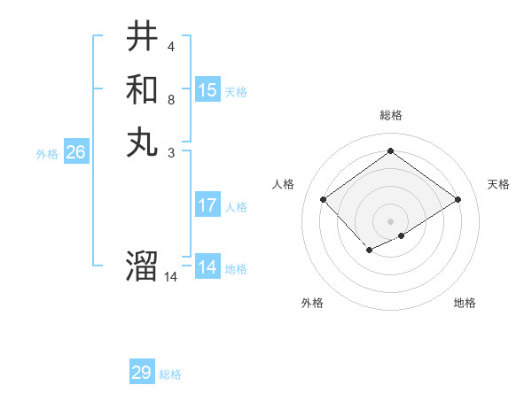 井和丸 溜さんの総格は29画の4点!