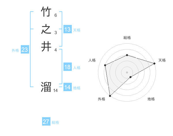 竹之井 溜さんの総格は27画の3点!