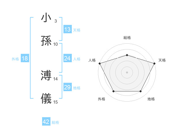 小孫 溥儀さんの総格は42画の3点!