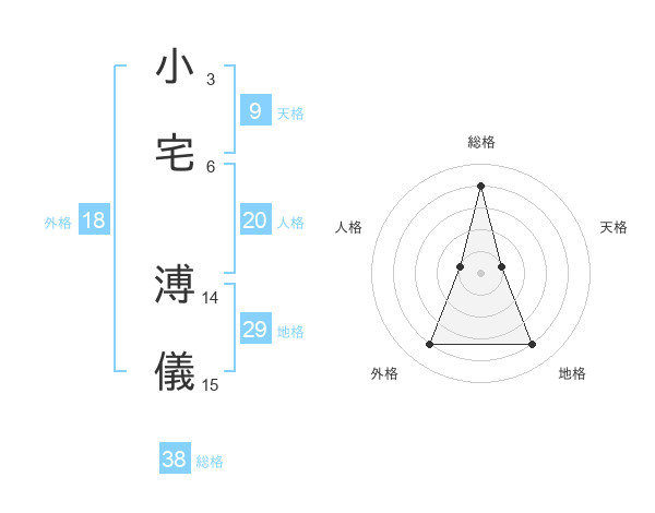 小宅 溥儀さんの総格は38画の4点!