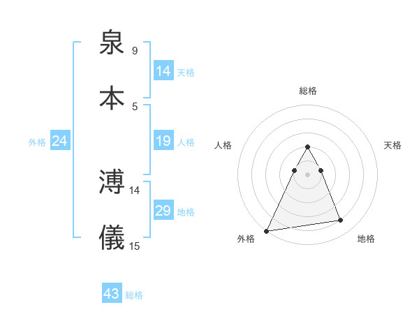 泉本 溥儀さんを姓名の画数から五運を鑑定