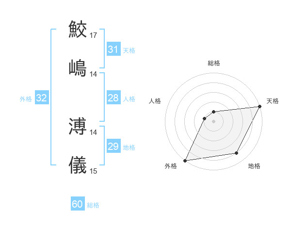 鮫嶋 溥儀さんを姓名の画数から五運を鑑定
