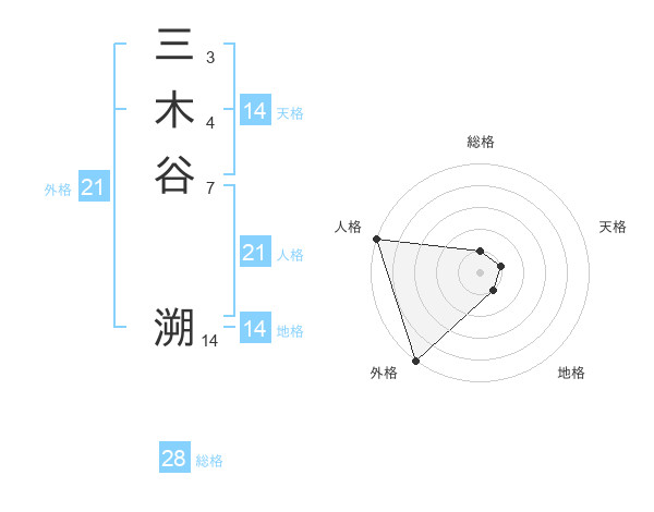 三木谷 溯さんの人格は21画の5点!