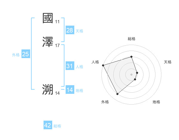 國澤 溯さんの人格は31画の5点!