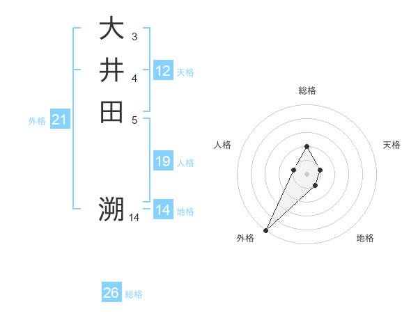 大井田 溯さんの外格は21画の5点!