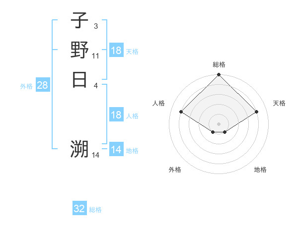 子野日 溯さんの総格は32画の5点!