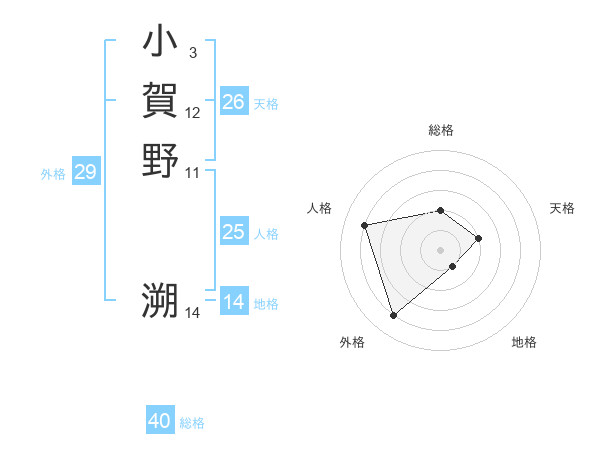 小賀野 溯さんを姓名の画数から五運を鑑定