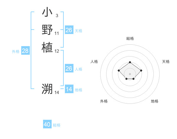 小野植 溯さんの総格は40画の2点!