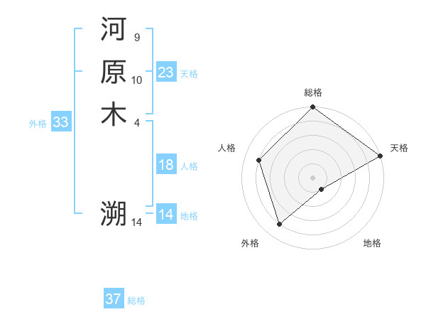 河原木 溯さんの総格は37画の5点!