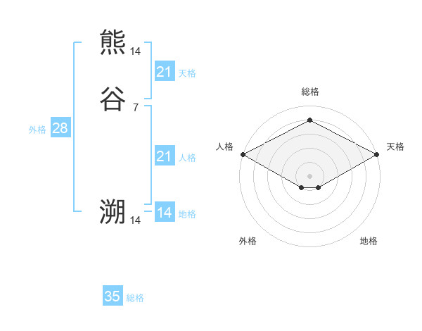 熊谷 溯さんの天格は21画の5点