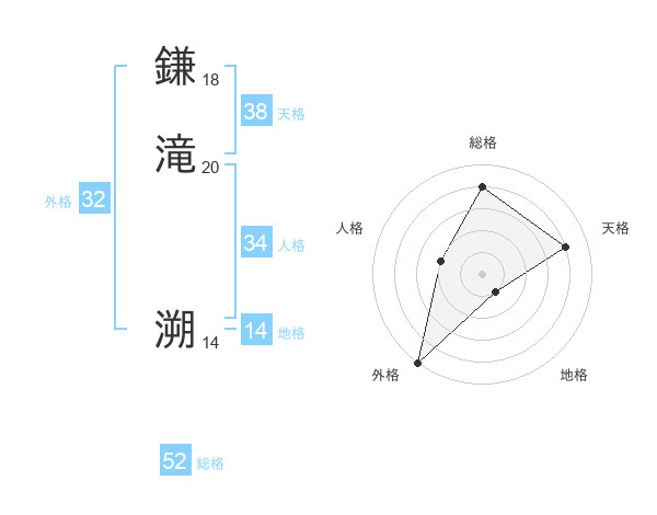 鎌滝 溯さんの総格は52画の4点!