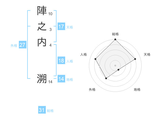 陣之内 溯さんを姓名の画数から五運を鑑定