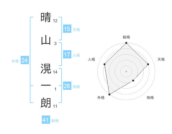晴山 滉一朗さんを姓名の画数から五運を鑑定