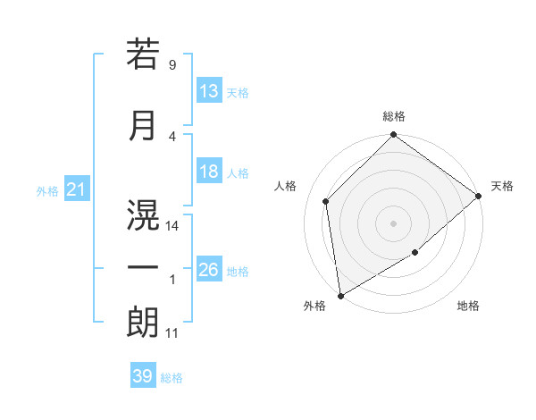 若月 滉一朗さんを姓名の画数から五運を鑑定