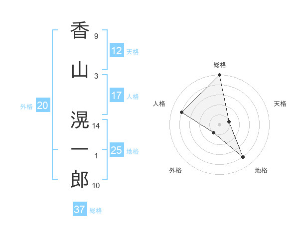 香山 滉一郎さんの総格は37画の5点!