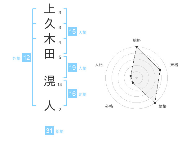 上久木田 滉人さんを姓名の画数から五運を鑑定