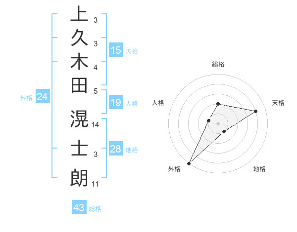 上久木田 滉士朗さんを姓名の画数から五運を鑑定