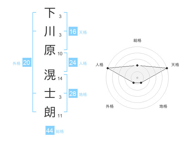 下川原 滉士朗さんを姓名の画数から五運を鑑定