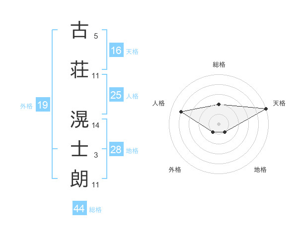 古荘 滉士朗さんを姓名の画数から五運を鑑定