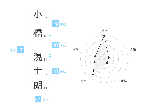 小橋 滉士朗さんを姓名の画数から五運を鑑定