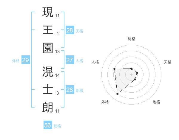 現王園 滉士朗さんを姓名の画数から五運を鑑定