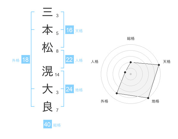 三本松 滉大良さんを姓名の画数から五運を鑑定